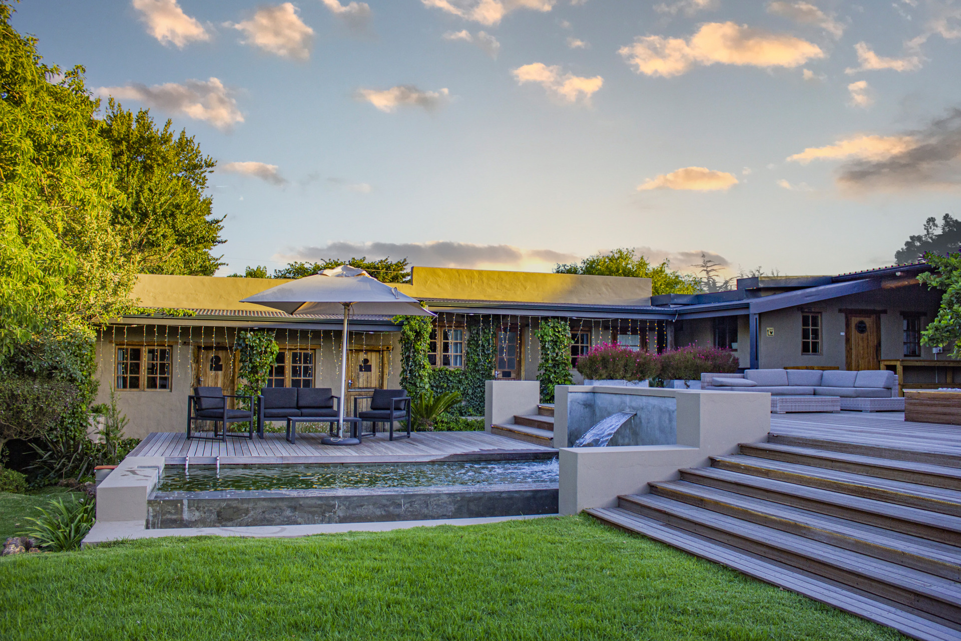 We have a great stoep overlooking the valley and dam for your guests to lounge on.