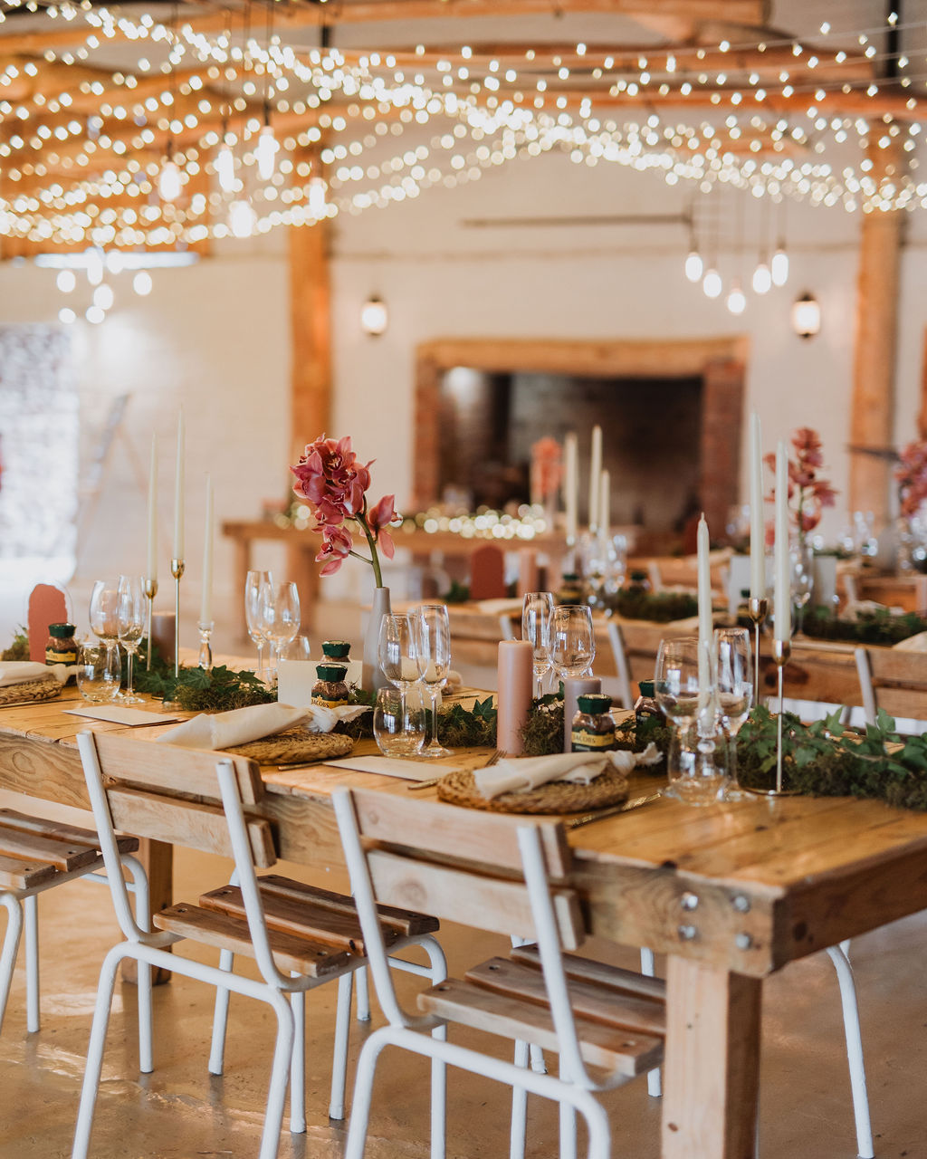 The celebration continued in full swing up at the Old Barn venue, with heartfelt toasts and lively dances resonating throughout the venue. With all of the fires burning, every cosy corner seemed to echo with laughter and joy, a testament to the love shared not only by Mienke and Wessel but by all those who came together for the weekend to celebrate their union.