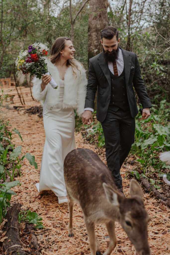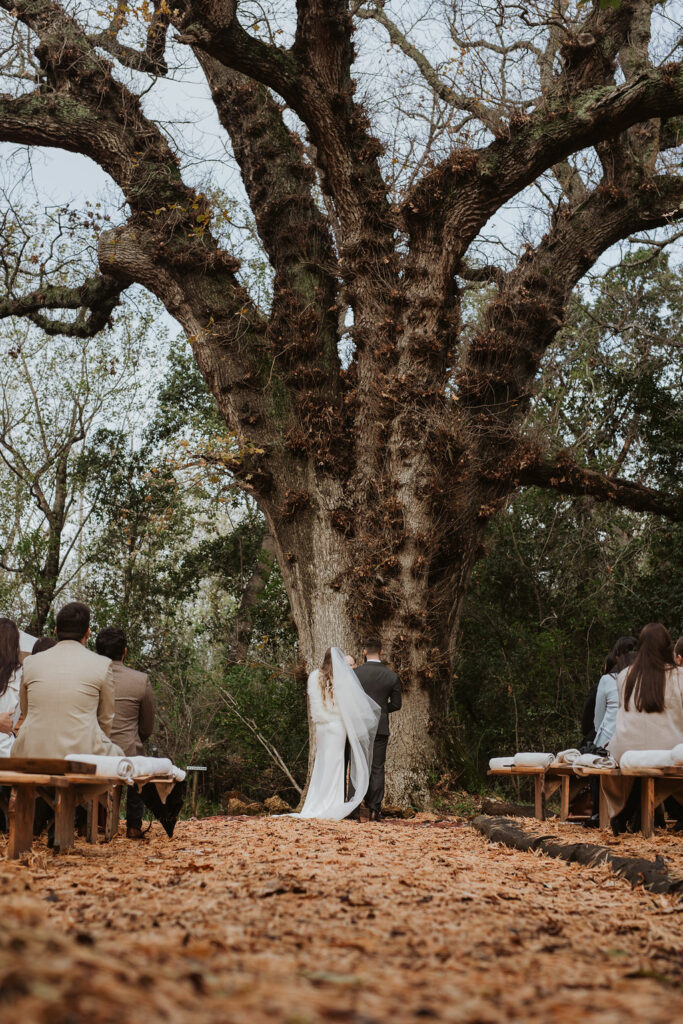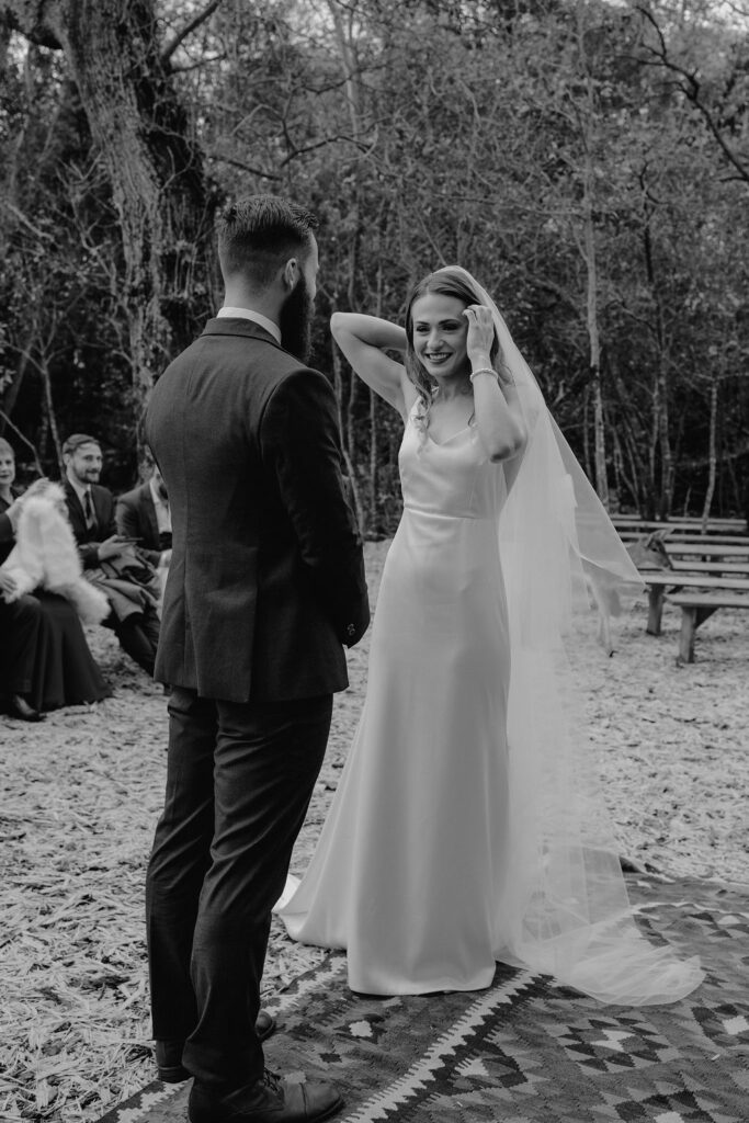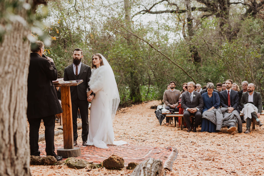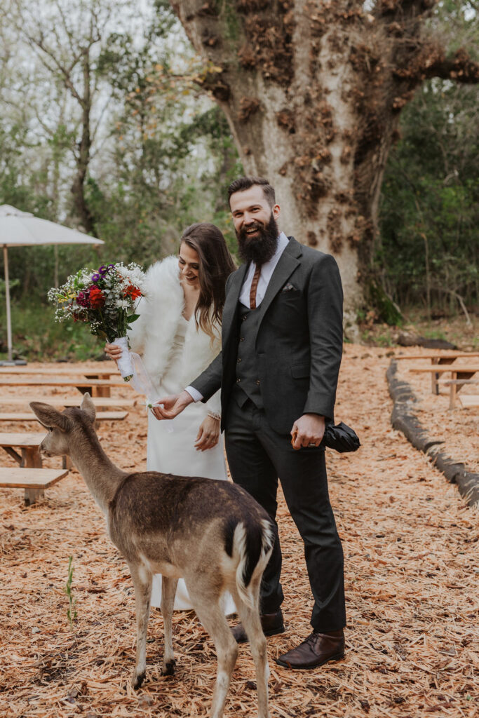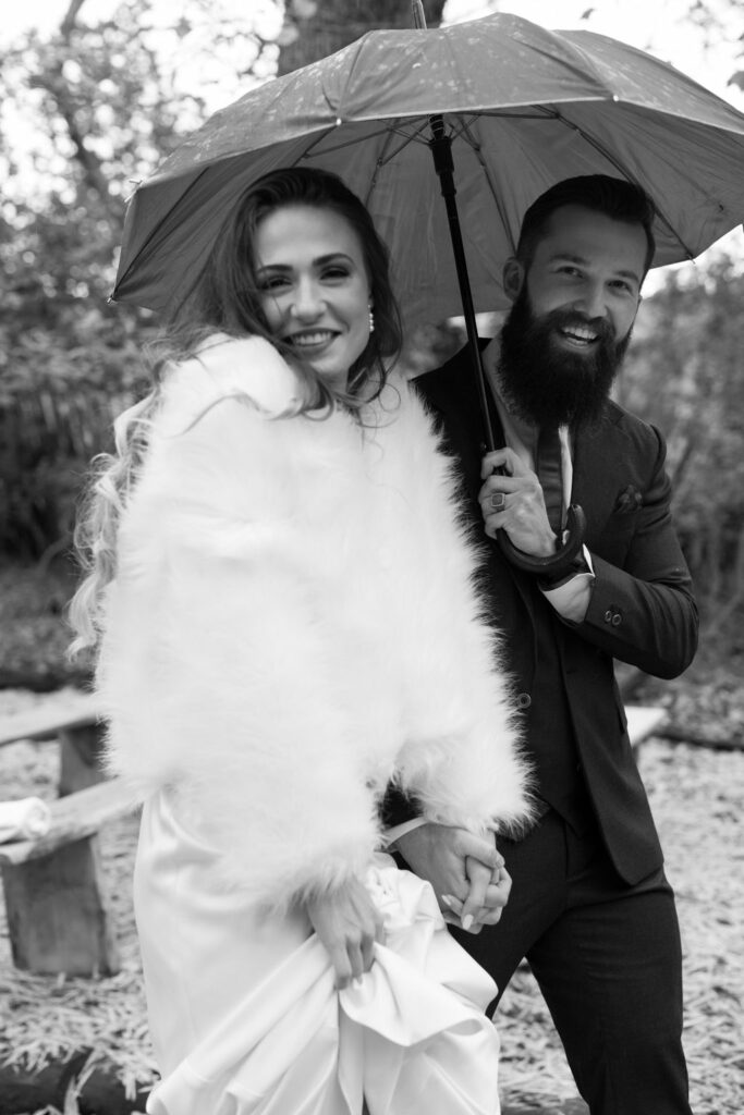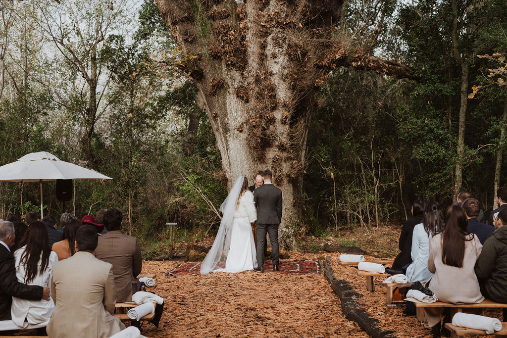 Mienke, radiant in her white gown with a warm furry stole, exuded elegance and grace as she walked through the trees and down the aisle. The ceremony, held amidst the picturesque setting of the Forest, was nothing short of magical. Surrounded by towering trees and nature’s embrace, the couple exchanged vows, sealing their commitment to each other amidst heartfelt cheers and happy tears from their family and friends.