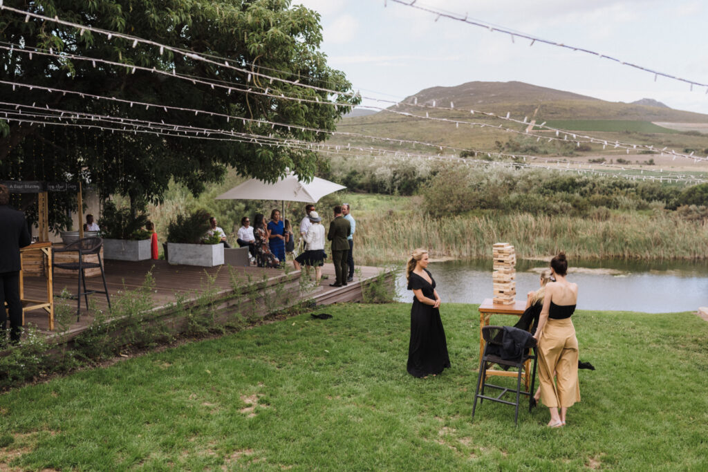 Once the vows were exchanged and the “I do’s” said, it was time to feast! The pre dinner drinks and harvest table were served on the deck overlooking the dam and fynbos, making it feel like a delicious garden of yumminess. Farm-to-table cuisine, folks – they went all out! And let’s not forget the toasts – they were like a rollercoaster of laughter, memories, and well-wishes.