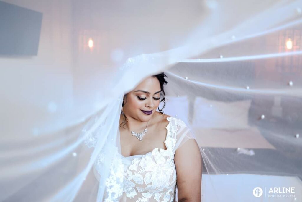 Jade & Radall’s photos were taken by Arline Photography.